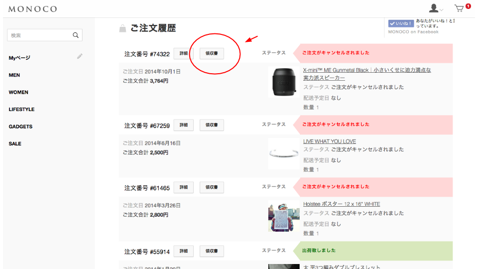 フォローする 領収書の発行について 2024年08月23日 14:18 カスタマーサポートセンター ご注文に関する質問 ■よくあるお問い合わせ クレジットカードでお支払いの場合、ご注文確定後に弊社よりお送り致します[ご注文内容のご確認]のEメールに記載されているURLより領収書を発行しております。 銀行振込の場合は、お振込完了のご確認が取れ次第、弊社よりお送り致します[支払い確認]のEメールに記載されているURLより領収書を発行しております。 またウェブサイト上の[ご注文履歴]ページにある[領収書]のリンクからもご確認いただけます。 0 コメント サインインしてコメントを残してください。
